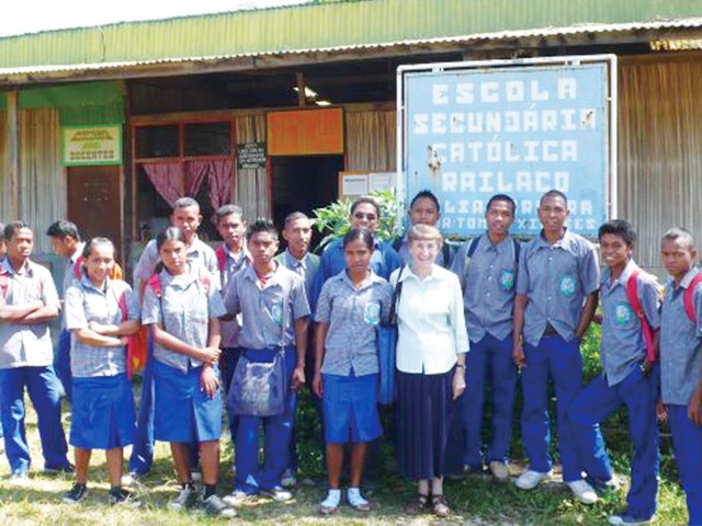 イエズス会は、2002年に独立した南洋の小国・東ティモールの独立戦争で荒廃した教育の復興の一助として2012年に聖イグナチオ学院中学校高等学校を設立しました。設立運営スタッフとして本校で教鞭をとられていた浦善孝先生が派遣され、現在に至っています。生徒会や有志が中心となり募金活動をし、貧しい家庭の生徒のために奨学金を送っています。
