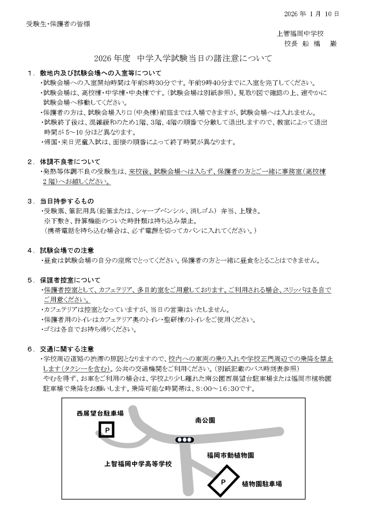 「2026年度入学試験当日の諸注意について」の内容に一部誤りがございました。深くお詫び申し上げますとともに、以下の通り訂正させていただきます。