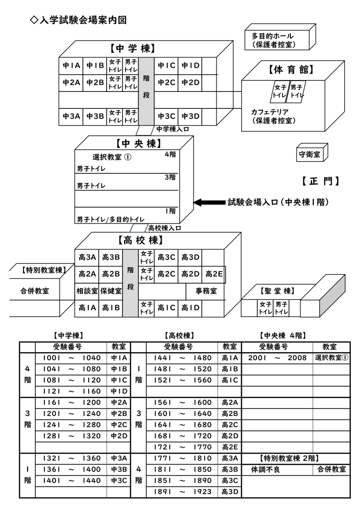 該当箇所:2ページ目「◇入学試験会場案内図」