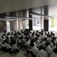 上智大学外国語学部英語学科の学生によるサマー・ティーチング・プログラムが始まり、生徒はオリジナルの教材を使用し楽しみながら英語に触れていました。