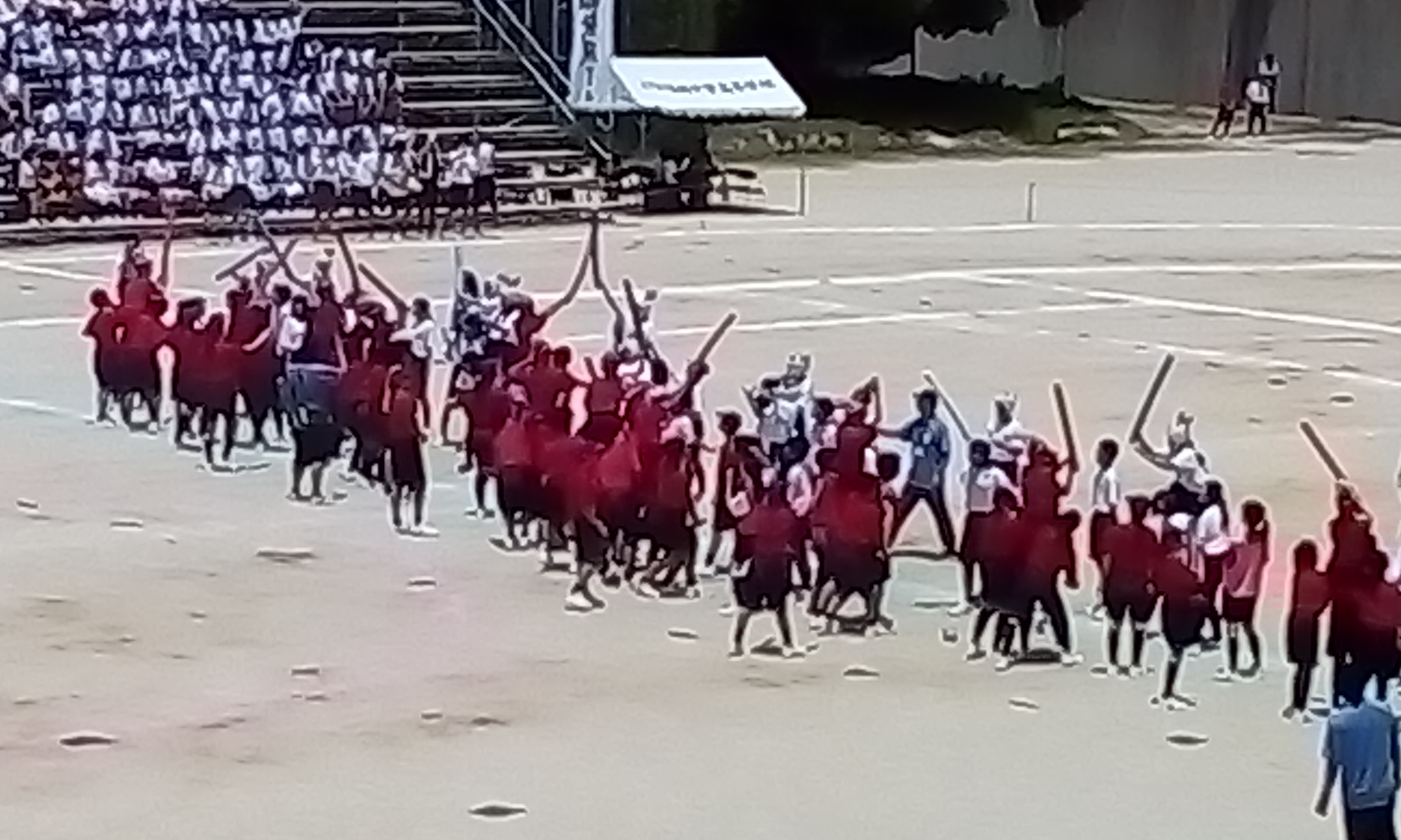 今日は晴天に恵まれ青空のもと、生徒たちの熱のこもった演技により、素晴らしい体育祭が行われました。総合では4年ぶりに紅が優勝しました。
