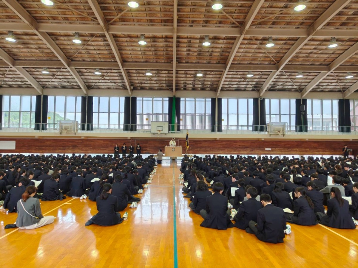 本日、本校の創立記念式典が行われました。広島学院中学校の越智直樹神父様に司式していただきました。講話では本校の創立記念日である11月1日が「庶聖人の日」であることと絡めながら本校生徒に求められる姿についてわかりやすくお話ししていただきました。中学1年生から高校3年生までが集まり、本校の歴史に思いを馳せました。